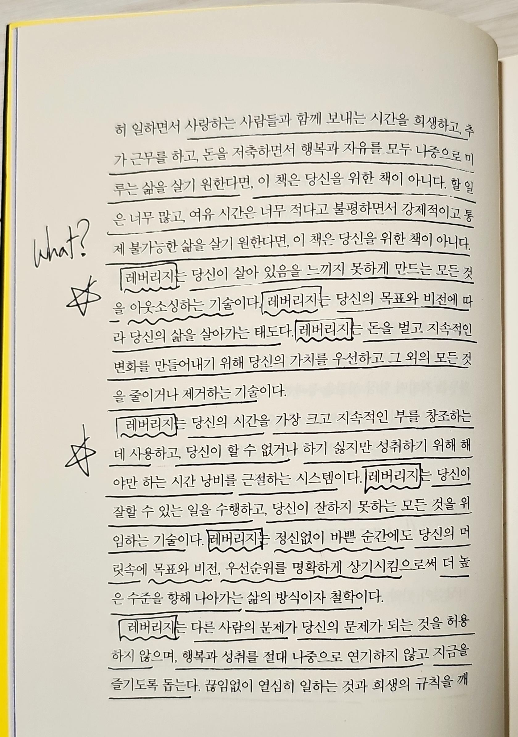 시간, 지식, 네트워크 이 세 가지 레버리지는 기억하고 활용하면 좋겠습니다. 롭 무어는 특히 "당신의 시간과 지식은 가장 강력한 자산이다"라는 메시지를 전달하며, 이를 효과적으로 활용하는 방법을 구체적으로 책에서 설명하는데 이런 방법들은 책에서 살펴보시기 바랍니다.