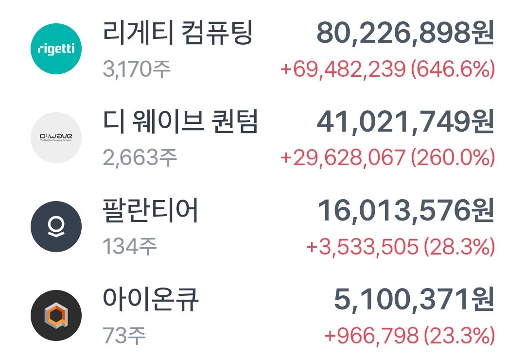 저도 두 회사에 투자하고 있는데 최근 양자에 대한 관심이 높아지면서 둘 다 주가가 잘 나가고 있습니다.