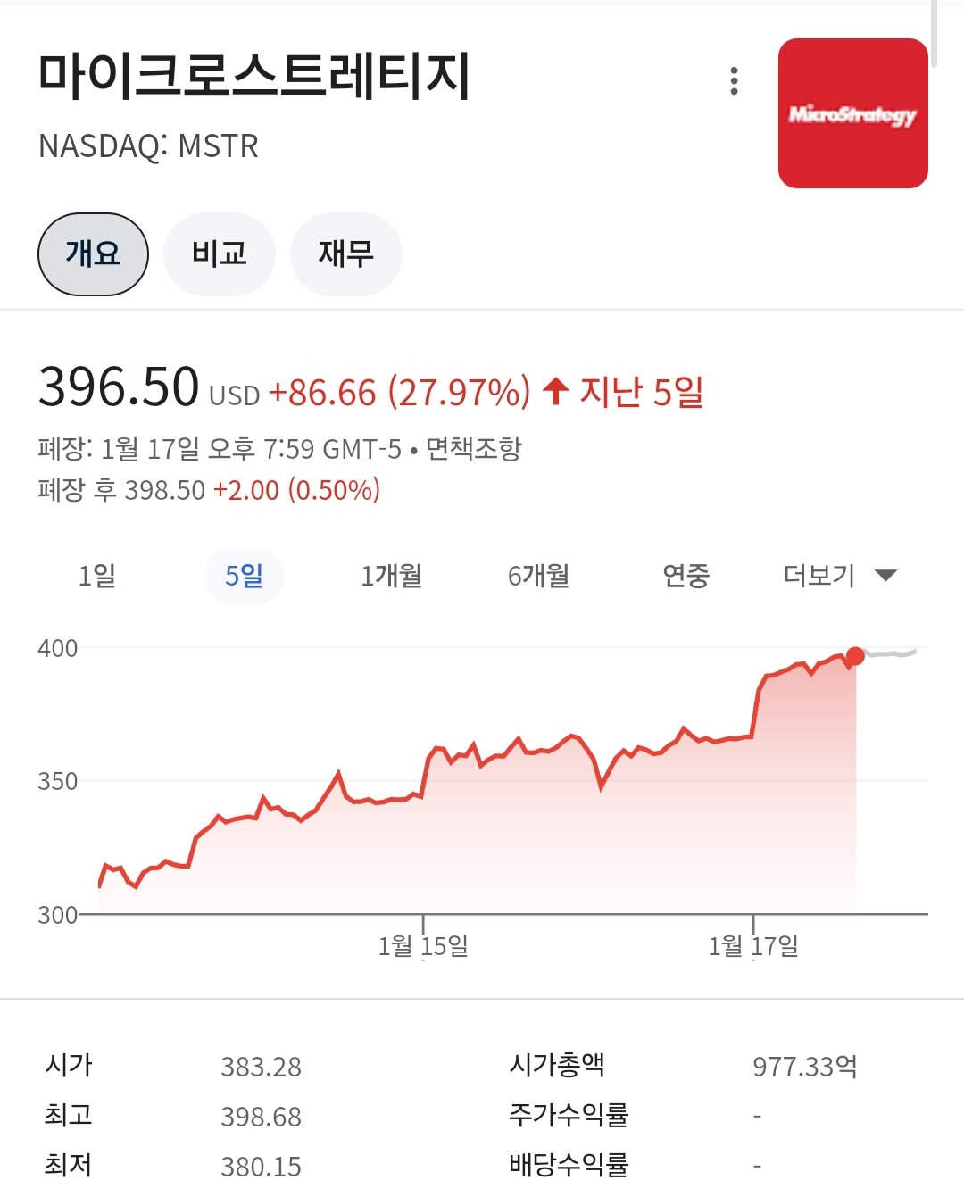 | 마이크로스트래티지(MSTR), 비트코인의 대안이 될 수 있을까? 투자자들이 알아야 할 내용들 (1) | 2025.01.25 |